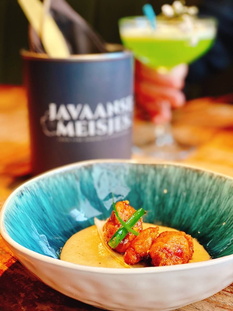 Bonuspunten voor de Java Sour! Leuk om de wijntjes af te wisselen met een cocktail. Goede bediening en uitstekende combi van hapje en drankje: Javaanse Meisjes is wat ons betreft de winnaar van deze Amusetour!