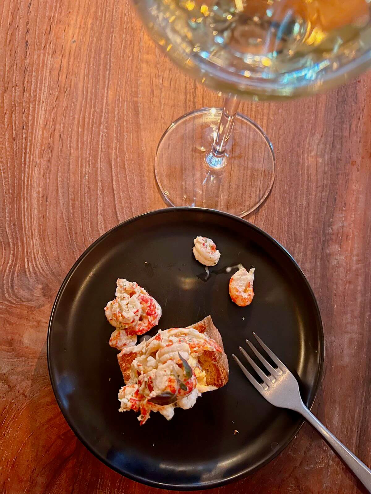 De brioche met rivierkreeft is een kleinere versie van een van de succesnummers op de kaart van Jonas. De Chardonnay uit Rioja is misschien wel de lekkerste van deze tour. Onze favoriet in elk geval!