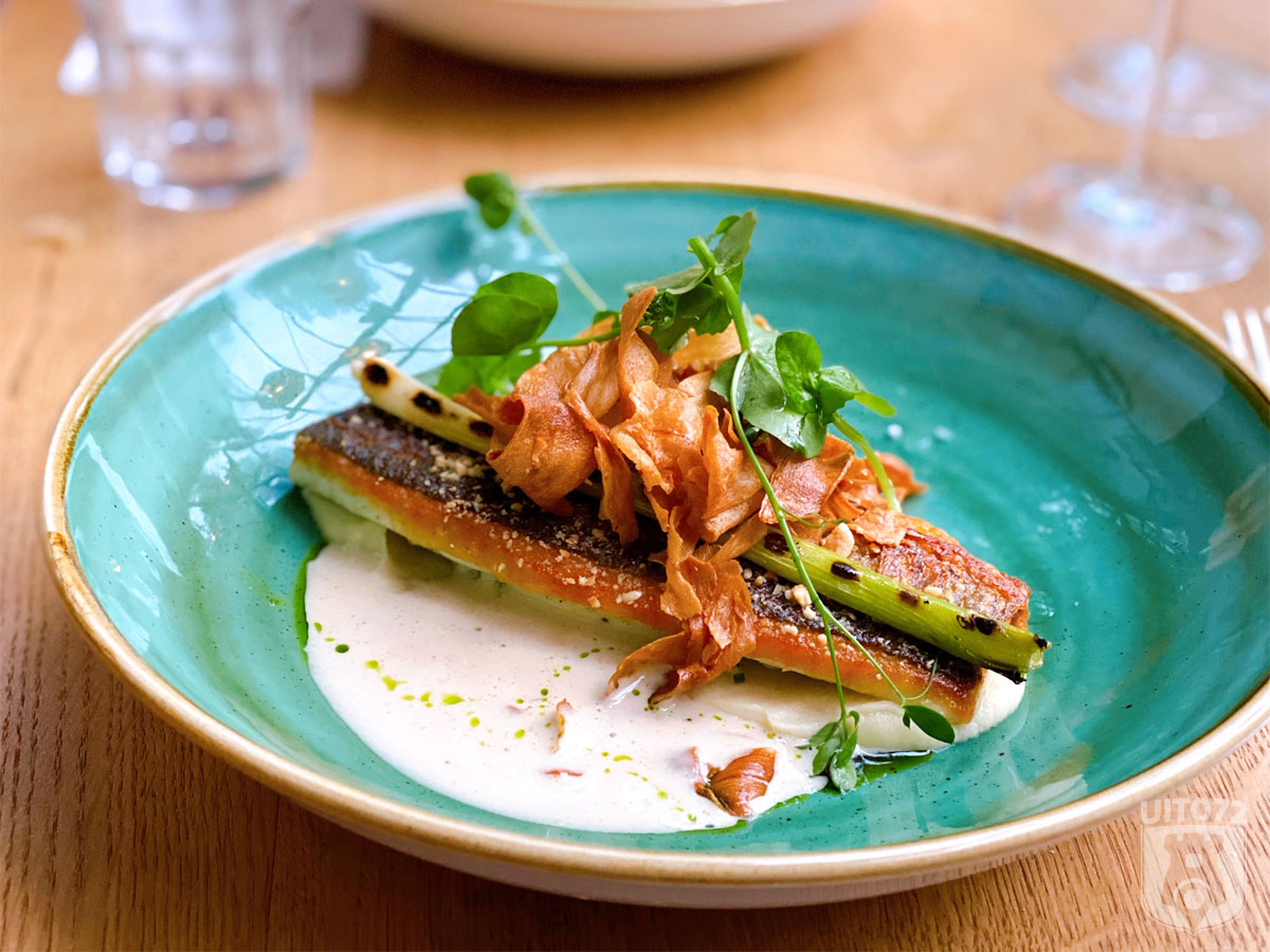 Het hoofdgerecht van vanavond ontstond tijdens het half jaar dat BAUT in het oude V&D pand zat. Zeebaars, pastinaak en beurre blanc. Mooie combinaties van volle smaken en 2 texturen van pastinaak.