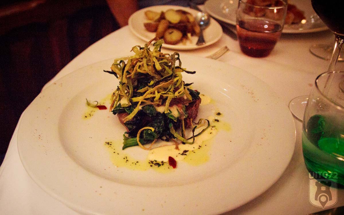 En verder heeft opperhoofd Niels een mooi stuk ossenhaas, met een stevige rode wijn erbij uit de omgeving van de Vesuvius.