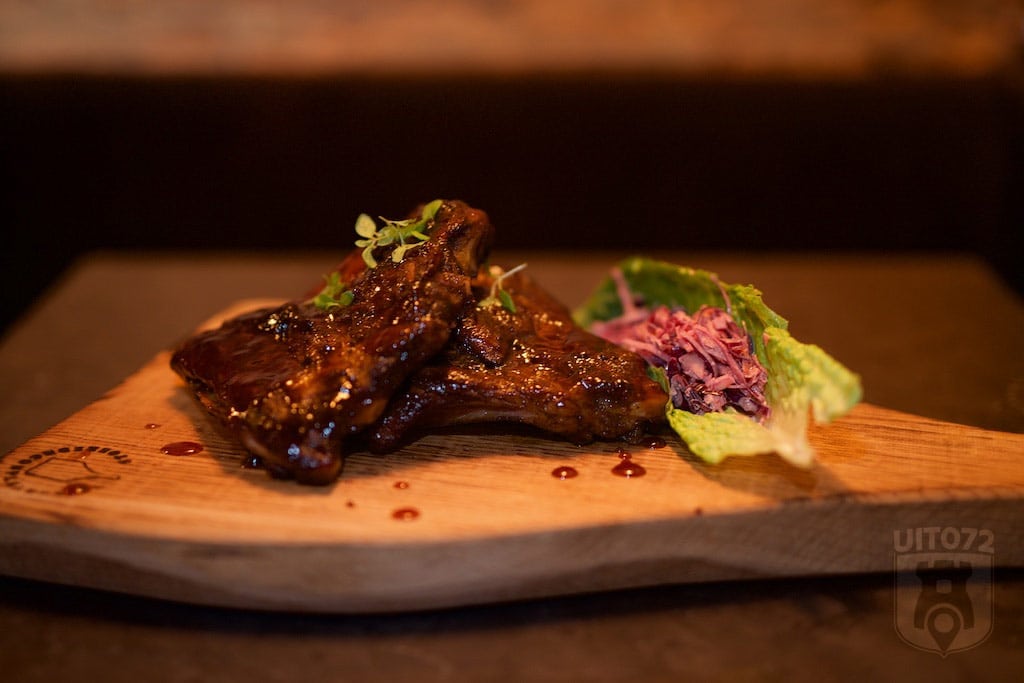 Daarna een lekker vleesplankje. Een kaasplankje, maar dan met vlees. Het is immers Meat & Co, dat soort dingen kan je dus verwachten! Weer stukjes ribs, ditmaal met een eigen (geheime) marinade die wederom weer smaakten om je vingers bij af te likken. Daarnaast een mooi dungesneden stuk sucade en chimichurri. Het vlees is van uitstekende kwaliteit, en de bereiding ook. Het goed op elkaar ingestelde keukenteam weet, onder de bezielende leiding van chefkok John precies hoe ze het vlees op de beste manier kunnen klaarmaken.
