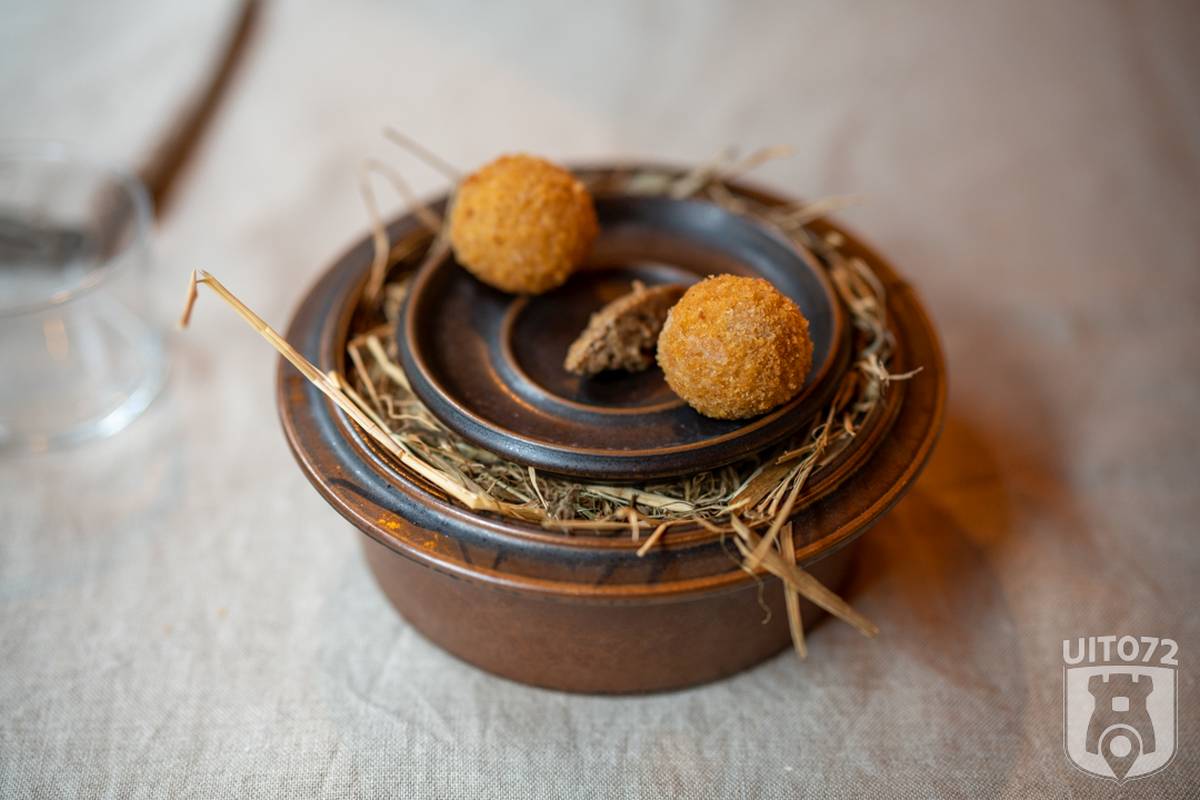 Tussen: bitterbal van Uut Hooi met roggebroodmosterd