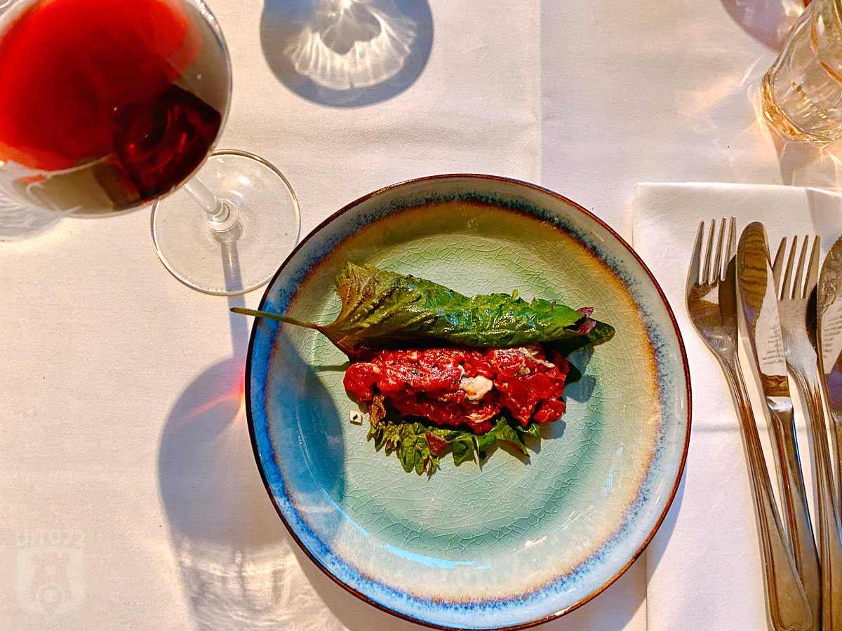 Dan op naar de parade van mooie afwisselende gerechtjes die het menu vormen! Wat dacht je bijvoorbeeld van een steak tartaar van Hollands rund, met een wilde waddenoester geserveerd in een perilla blad?