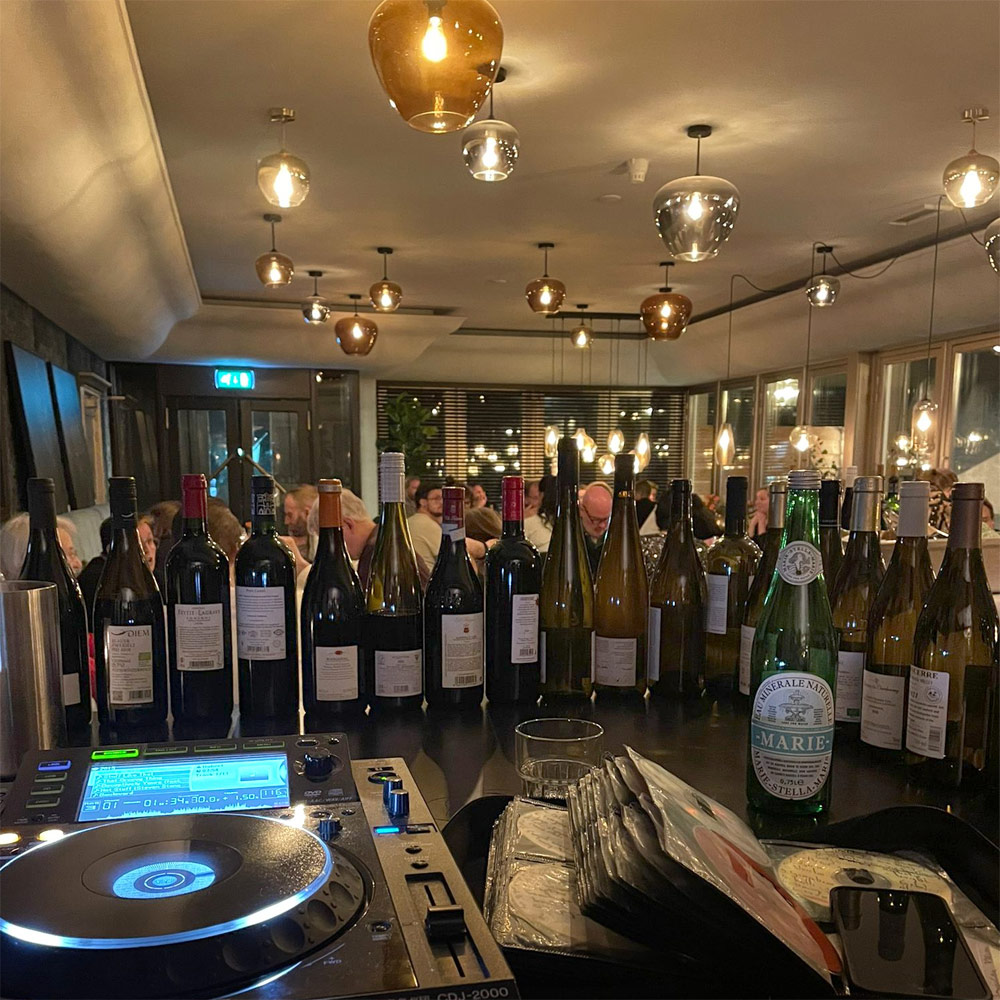 Terwijl we smikkelen van de Aubergine Sabich met Hollandaise en de gegrilde focaccia met hangop, installeert de dj zijn installatie voor sfeervolle achtergrondmuziek, wat later op de avond overzal gaan in feestelijker geluiden.