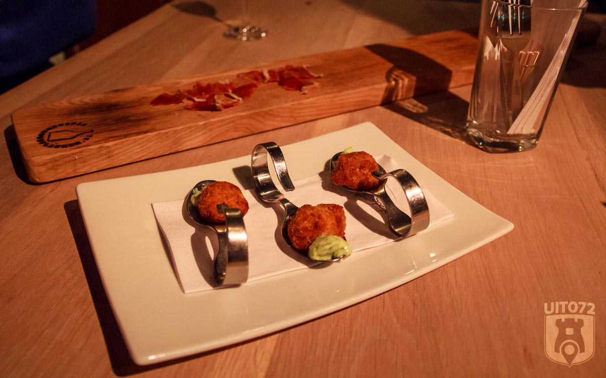We kwamen binnen en we werden begroet door het vriendelijke personeel vanachter de grote bar die middenin de zaak. We hadden net onze jas afgegeven en toen kwam gastheer Rafael ons al tegemoet met heerlijke schaafsels van het Pata Negra zwijn, die een prominente plek op de bar heeft. Want, kwaliteit mag je laten zien. Heerlijk, met een lekkere cava erbij. Dat smaakte naar meer!
