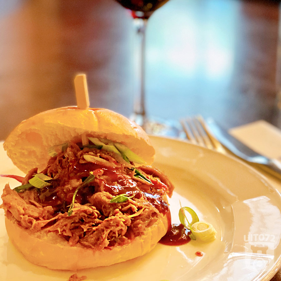 Op naar het mooie Heeren van Sonoy. Die gooien het deze wandeling over een heel andere boeg met pulled chicken met barbecuesaus, rode kool salade en cherrytomaat op een briochebroodje. De rode, Spaanse wijn is vol zwart fruit en kruidigheid.