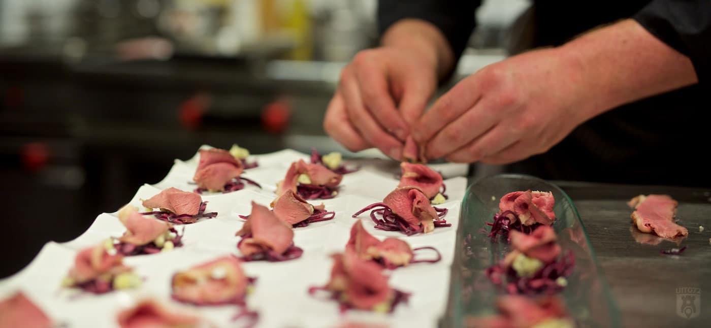 Het toppunt van de avond was hert. Dit mooie stukje vlees lag al vanaf 14.00 uur keurig gaar te worden op een temperatuur van 80 graden. Het was een perfect stukje vlees. De stilte aan onze tafel bevestigde dat. Een kleine blik door het restaurant liet ons zien dat de rest van de gasten ook aan het genieten waren.