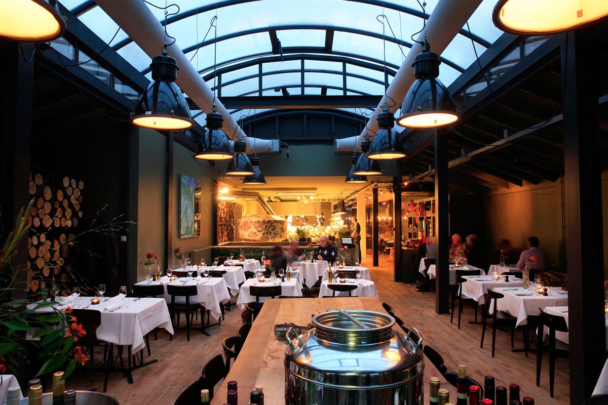 De New Yorkse stijl proef je gelijk als je Fabbrica binnenkomt. Industrieel en ruw maar tegelijkertijd puur en warm. Oude robuuste kasten en lampen worden afgewisseld met prachtig transparant meubilair, design verlichting en antieke Perzische tapijten.