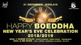 Happy Boeddha NYE is ook dit jaar neergestreken in KOEL310. Dit feest is elk jaar weer een succes. Deze keer 2 zalen met 2 verschillende muziekstijlen. Geen dresscode dit jaar, slechts goede voornemens: meer feestjes & meer dansjes. De laatste kaarten gaan nu in de verkoop, zorg dat je er bij bent!