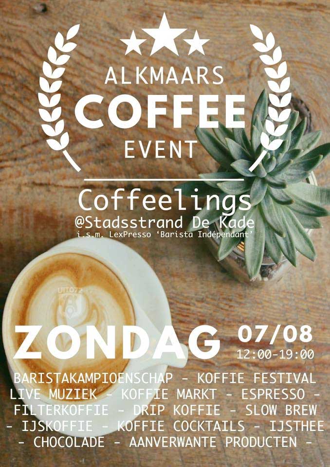 Het Alkmaars Coffee Event vindt plaats op zondag 7 augustus tussen 12.00 en 19.00 uur op Stadsstrand De Kade. Het is gratis toegankelijk en wordt afgesloten met live muziek van de band Zoet.