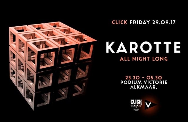 Het is weer de hoogste tijd voor vette techno in Podium Victorie. 29 september is de volgende editie van Click met niemand minder dan Karotte!
