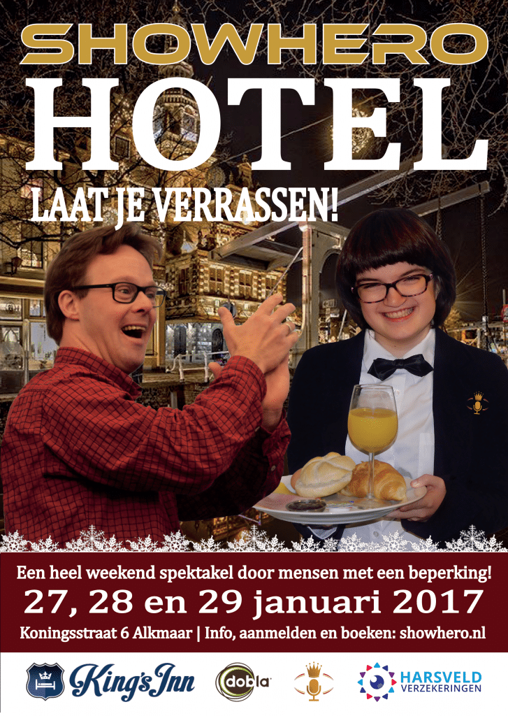 Op 27, 28 en 29 januari 2017 runnen zestig mensen met een beperking een weekend lang het King’s Inn City Hostel in Alkmaar. Tijdelijk krijgt dit de naam: “Showhero Hotel”.